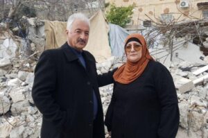 Fakhri and Amina Abu Diab stand in front of the remains of their home in Silwan (photo: Al Jazeera).